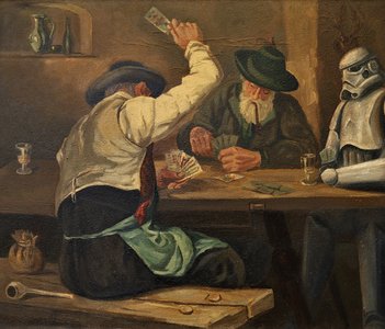 Alten, vergessenen Gemälden neues Leben einzuhauchen. So begann Max Stelters künstlerische Reise unter dem Synonym Dr. Comax. Durch die Verschmelzung alter Malerei mit Elementen der Pop-Kultur gibt er vergangenen Bildern eine neue Bedeutung und einen Platz in der zeitgenössischen Welt der Kunst. Auf seiner Reise entlang zahlreicher vergessener Gemälde entwickelte er sich weiter und begann neue Serien abseits der alten Leinwände. Immer auf der Suche nach dem perfekten Zusammenspiel aus Ästethik, Humor und Tiefgründigkeit lässt Max Stelter auf seinen Werken Welten zu etwas einzigartigem verschmelzen.
