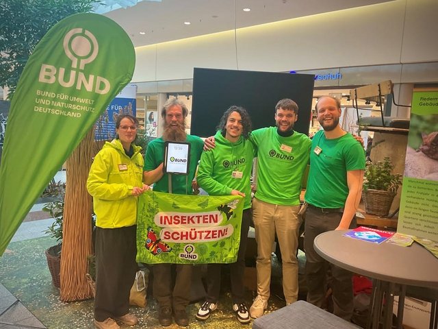 Das BUND-Team mit Sonja V., Fabian E., Anna S., Nicolas L. und Cedric S. steht mit seinem Stand im Erdgeschoss des Weserparks gegnüber von Nordsee. Die Öffnungszeiten des Weserparks sind montags bis samstags 8 bis 20 Uhr. Weitere Infos über die Aktivitäten des BUND in Bremen und die zahlreichen Mitmach-Möglichkeiten gibt es unter www.BUND-Bremen.net.